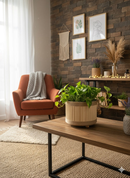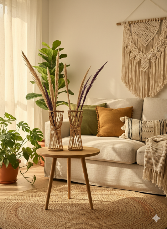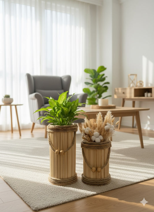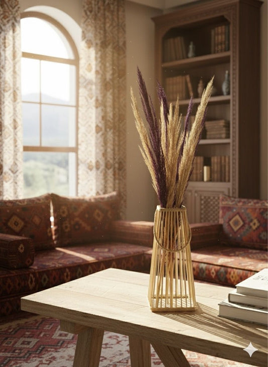 Bambu Çubuk El Yapımı Küp Motifli Doğal Vazo / Ahşap Pampas Vazo