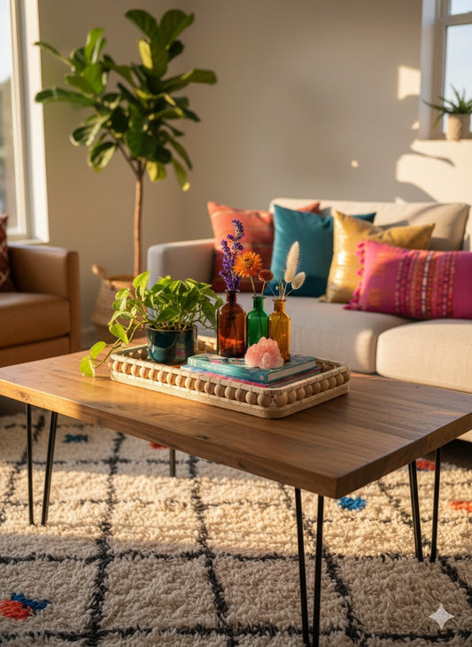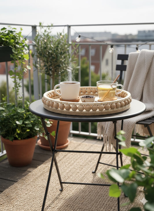 Dekoratif Ahşap Bambu Çubuklu Söz Tepsisi 2'li Set