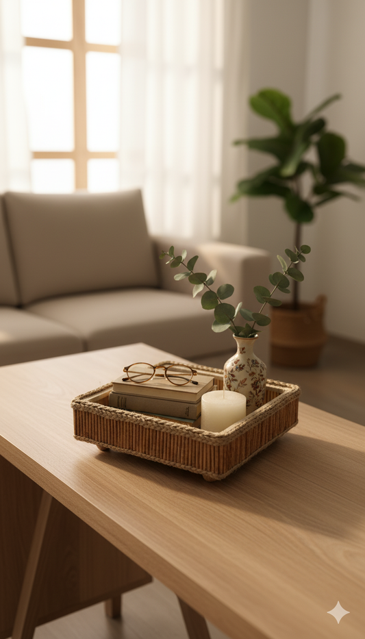 38% indirimBambu Çubuklu Ahşap Dekoratif Kare Tepsi