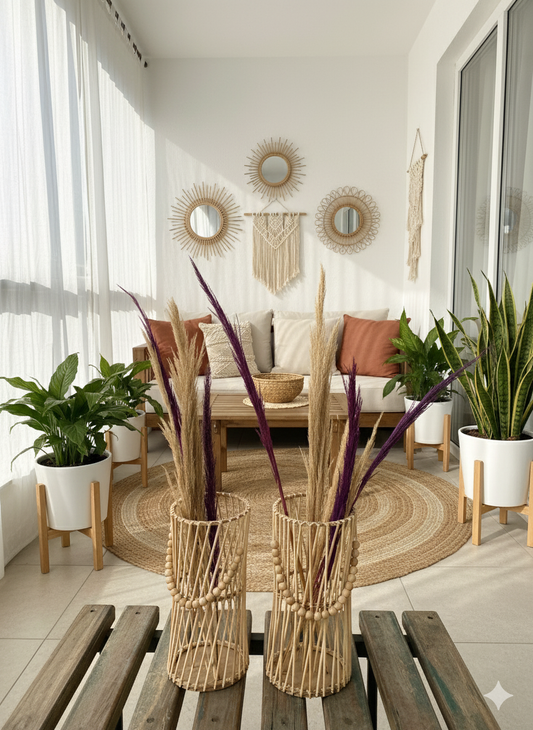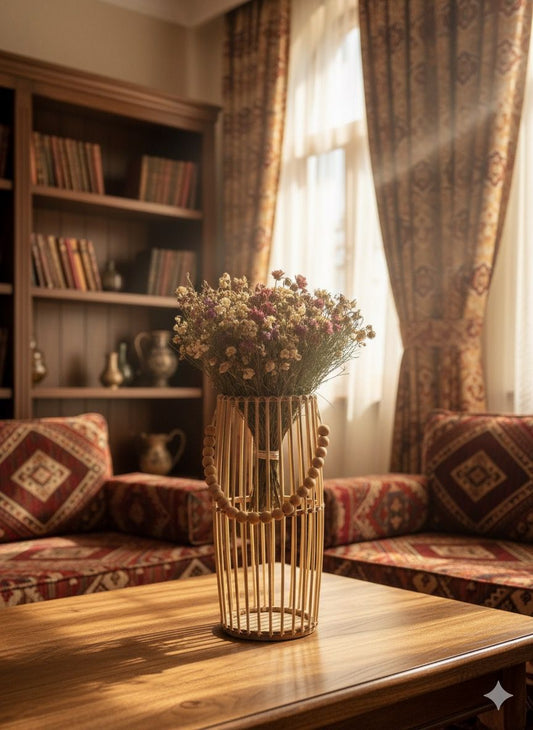45% indirimBambu Çubuklu Ahşap Boncuklu Pampas Vazo