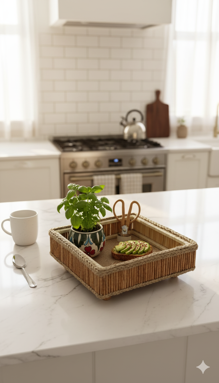 • Eşsiz Rustik Karakter: Tepsinin dışındaki kalın örgü ve içindeki rustik çıta detayları, ona benzersiz bir kulübe (cottage) veya çiftlik evi (farmhouse) havası katıyor. Her parça, doğallığı ve el emeğini hissettiriyor.