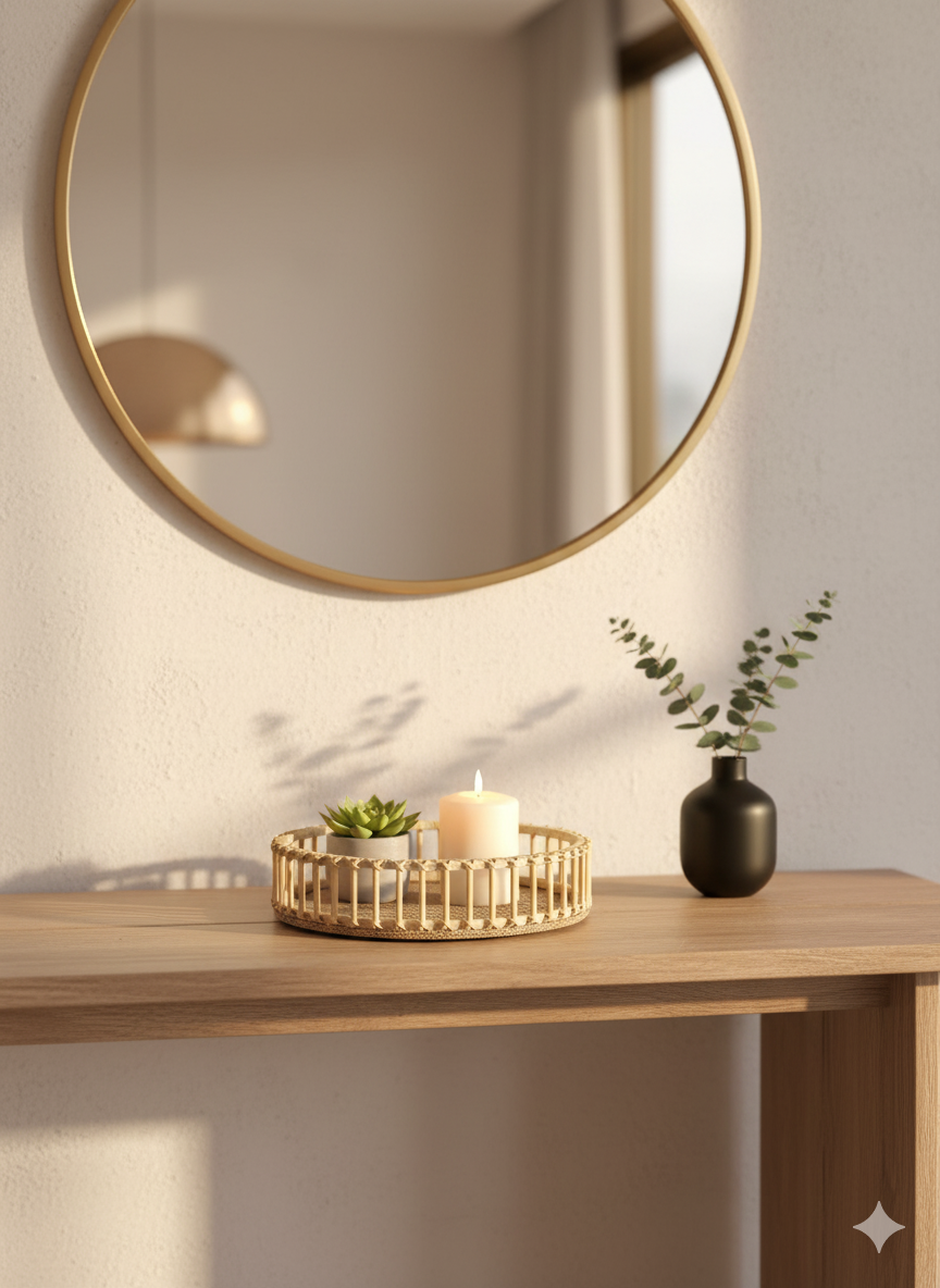 Salonda: Altlık olarak mumları, küçük saksı bitkilerini veya koleksiyon objelerini sergileyin.