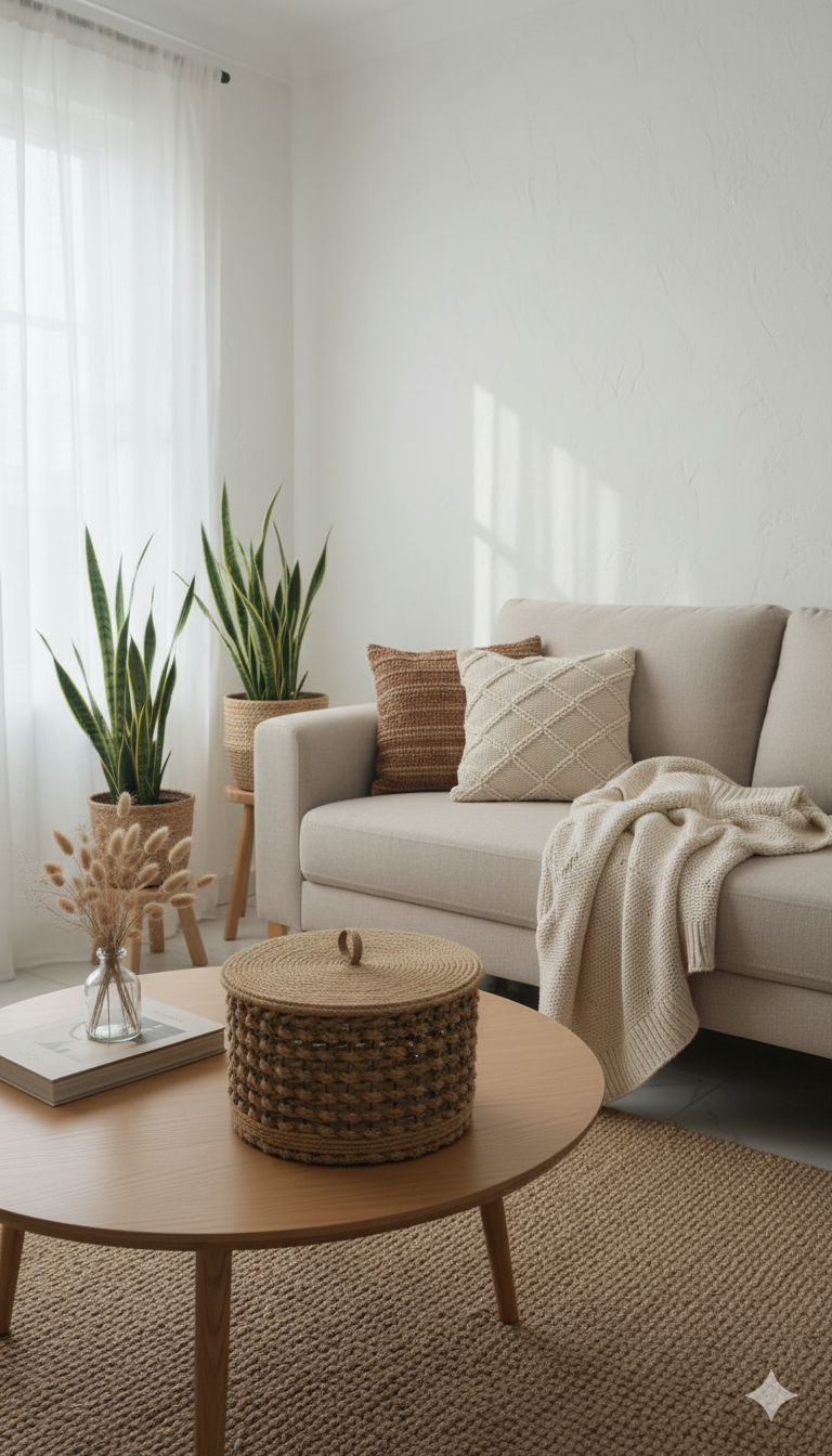 Dekorasyonda:, hasır objeler ve bitkilerle birlikte kullanılır. Katmanlı ve doğal dokulu ürünlerle sıcak bir atmosfer yaratılır.