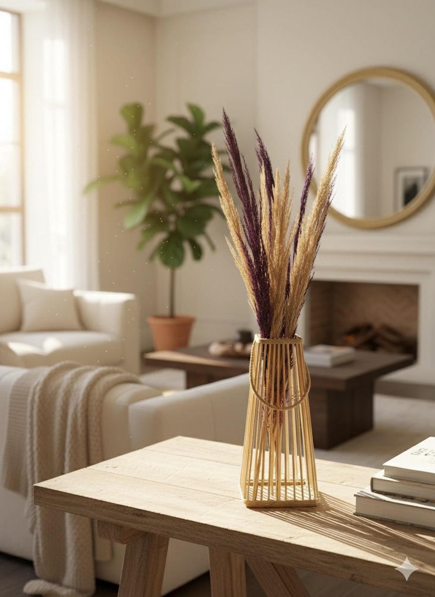 • Sıcak ve Samimi Atmosfer: Doğal malzemelerle üretildiği için evine anında sıcaklık ve huzur getiriyor. 🏡☕ Kuru çiçekler 🌾 ya da sazlıklarla mükemmel bir uyum yakalıyor.